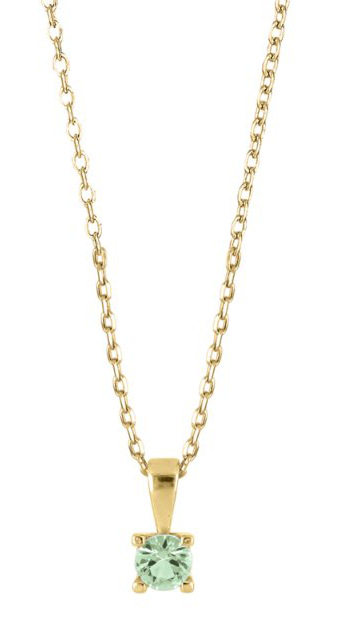 The gold-colored Joanli Nor HELENNOR 245 175-3 necklace shines with a beautiful and classic crown-set, brilliant-cut green synthetic zirconia that looks beautiful and dignified in any situation, while adding a touch of flair to your outfit. The chain length is adjustable from 415 to 445 mm, and the 18-karat gold plating completes the elegant look of this silver necklace year after year. The pendant measures 4x9 mm. The Joanli Nor silver jewellery is of Danish design and comes in the manufacturer's original gift box.