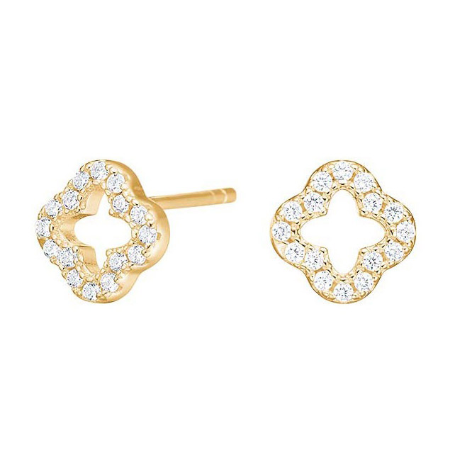 Joanli Nor PamelaNor 30454465900 earrings have a lucky four-leaf clover design, which is decorated with clear zirconias for added sparkle. The earrings have a stud fastening and are made of gold-plated silver. The height of the earrings is 7.5 mm and the width is 7.5 mm. Joanli Nor silver jewelry is of Danish design and is delivered in the manufacturer's original gift box.