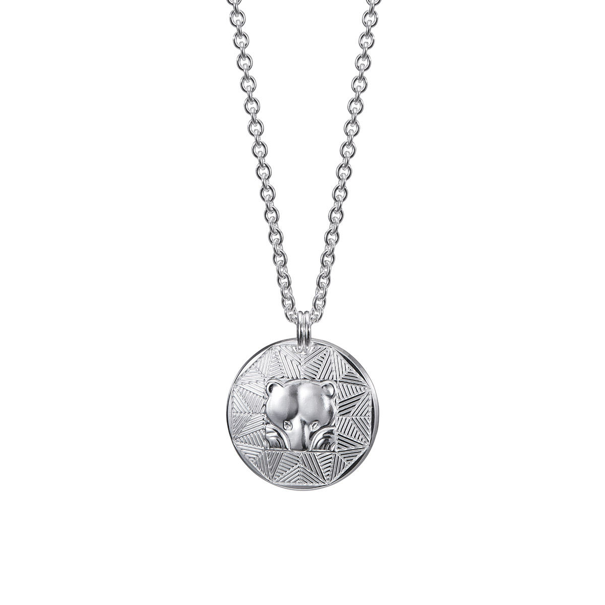 Designed by Lina Simons, the large silver Bear pendant takes you back in time to the ancient beliefs of the northern people. This chunky 25 mm diameter large amulet pendant symbolises the bear's kingship and wisdom. The bear has been the ruler of the Nordic forests for centuries, and now you can carry some of this ancient power with you. The pendant has a beautiful silver finish and the chain has an adjustable length of 55/60cm.