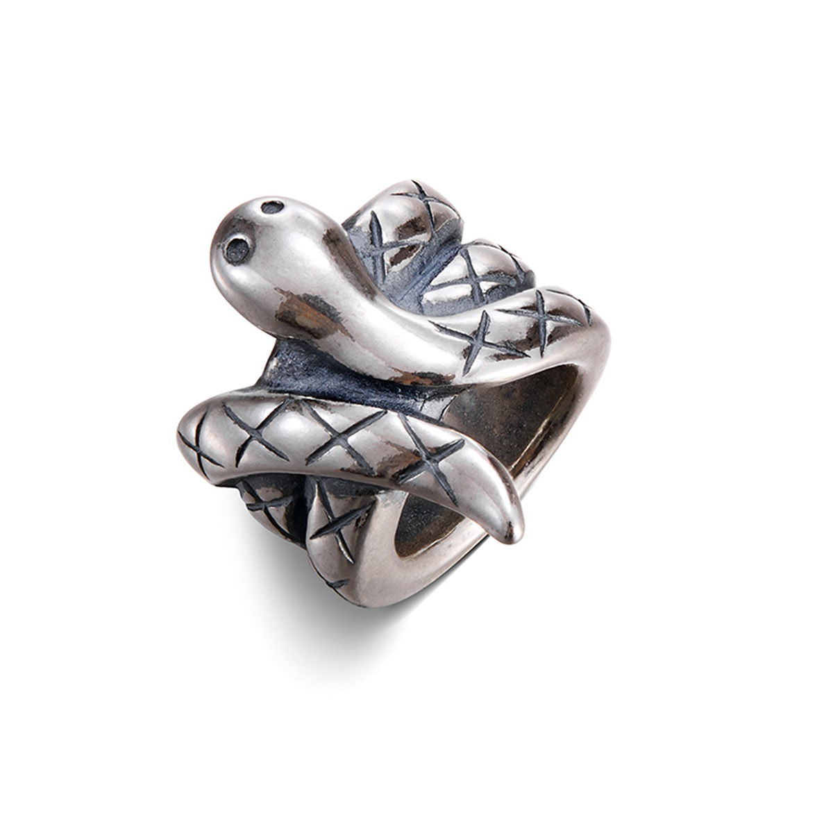 The silver Snake Charm is inspired by Kalevala Jewelry’s iconic Snake Ring, whose original model dates back to the Merovingian period in the 7th century. In the shape of a snake, it symbolizes strength, fearlessness, and the cycle of years. The charm can be worn on a necklace or bracelet, or added to earrings. You can also attach it to a shoelace or use it as a hair accessory. Handcrafted in Finland from over 99% recycled silver. Dimensions: inner diameter 7 mm, height 10.9 mm, width 12.1 mm, weight 3 g. Designer: Saija Saarela.