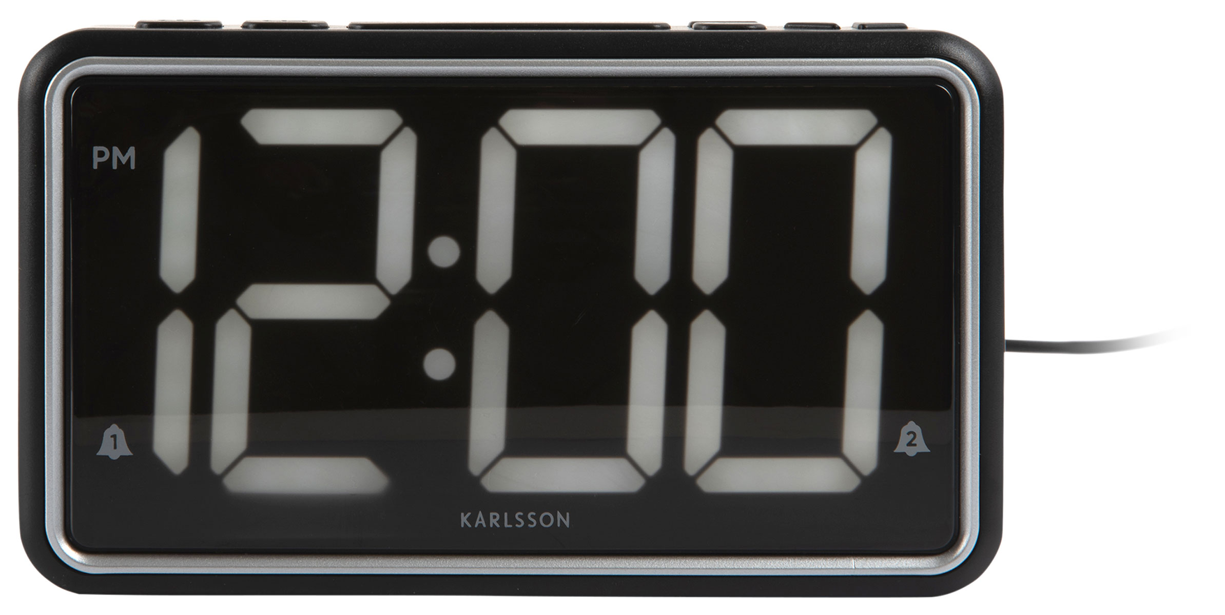 Karlsson New Retro alarm clock KA6035BK is made of ABS plastic and has a digital dial. The alarm clock also has a snooze function for late mornings and a light button so you can see the time better. The digital LED alarm clock is 9 cm wide and 4.5 cm high. The clock works with 2 x AAA batteries (batteries are not included in the product).