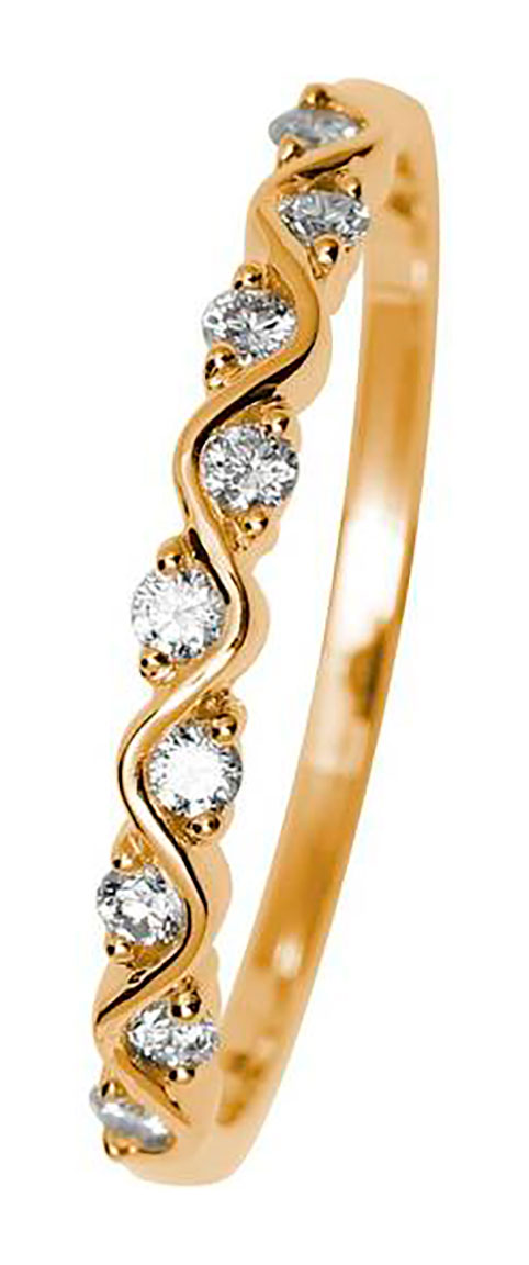 The Kohinoor 033-9817 anniversary diamond ring shines with 9 brilliant cut diamonds surrounded with a lace trim design. The material of the ring is 14 karat yellow gold. The width of the body is 1.2 mm.