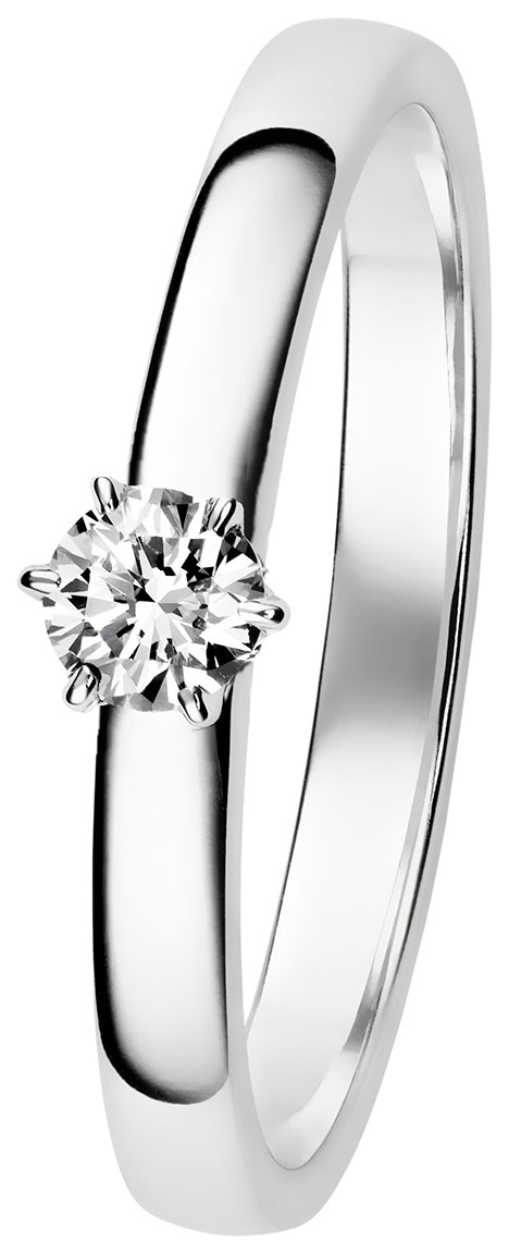 Kohinoor Leonora 034-248V-20B4 is a spectacular single row diamond ring in 14 karat white gold. The diamond ring features one 0.19 ct H/SI diamond. The width of the shank is 2.4 mm and the width at the stone point is 4.5 mm. The design is by Assi Arnimaa. Kohinoor rings are delivered in the original manufacturer's box and come with a one-year guarantee.