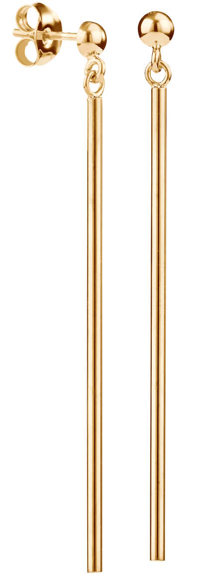 Kohinoor Deco earrings 133-662. These long gold earrings have a stud fastening. Material 14 karat gold. The width of the earrings is 1,5mm and the height is 55mm. These high quality Finnish Kohinoor earrings are made at Kultakeskus Oy's jewellery workshop in Hämeenlinna, Finland. The jewellery is delivered in Kohinoor's gift boxes.