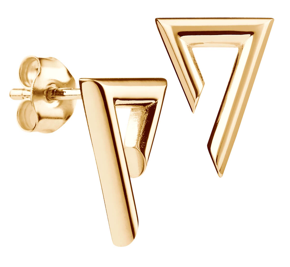 Kohinoor Deco earrings 133-663. These open triangular gold earrings have a stud fastening. Material 14 karat gold. The width of the earrings is 10mm and the height is 13,5mm. These high quality Finnish Kohinoor earrings are made at Kultakeskus Oy's jewellery workshop in Hämeenlinna, Finland. The jewellery is delivered in Kohinoor's gift boxes.