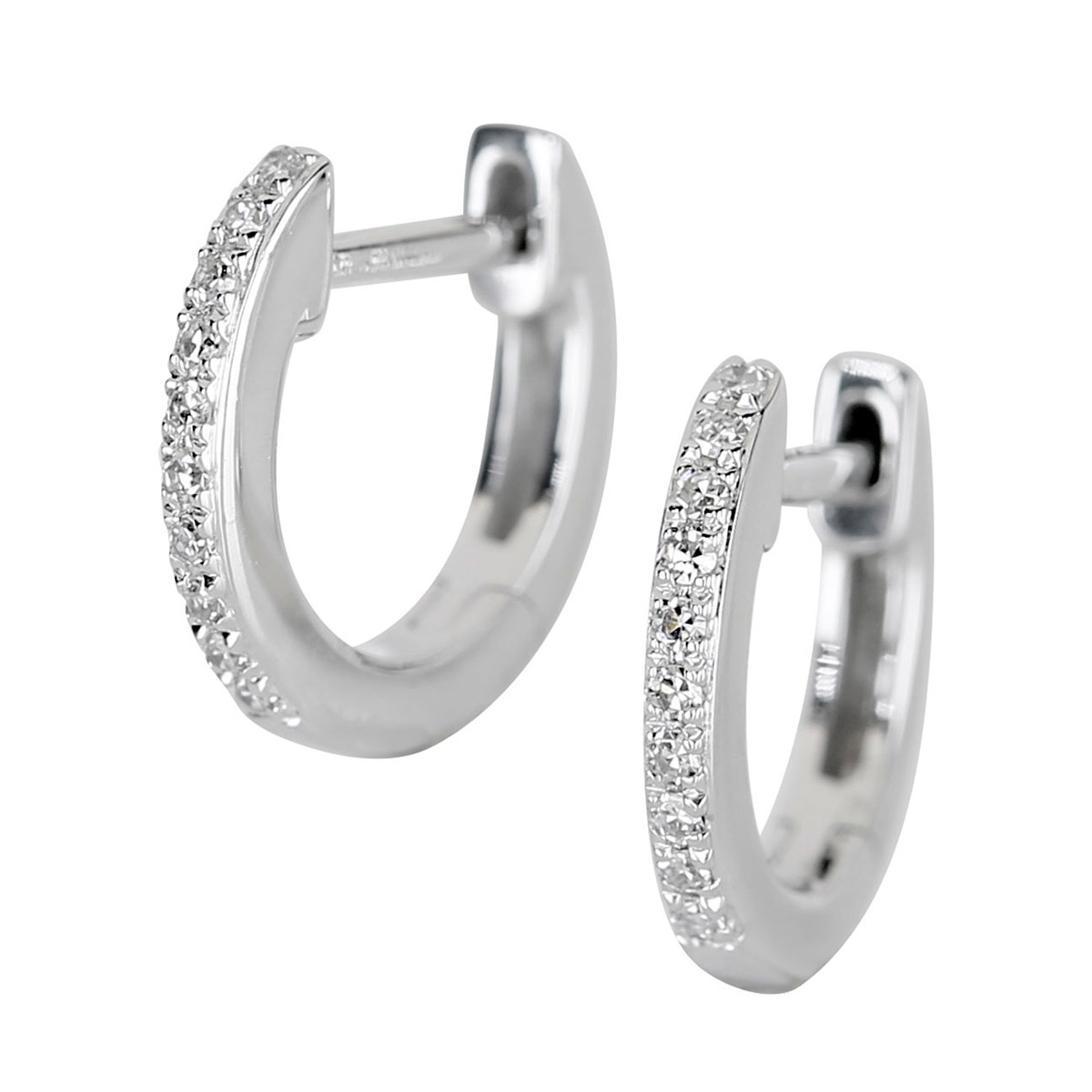 Kohinoor 143-P4515V diamond earrings bring luxury to everyday life and celebrations. The earrings are made of bright white gold and are set with 20 sparkling 0,06ct H SI diamonds. The height of the setting is 1.95 mm and the width is 1.4 mm. The earrings have a ring fastening. Kohinoor jewelry is delivered in a manufacturer's gift box.