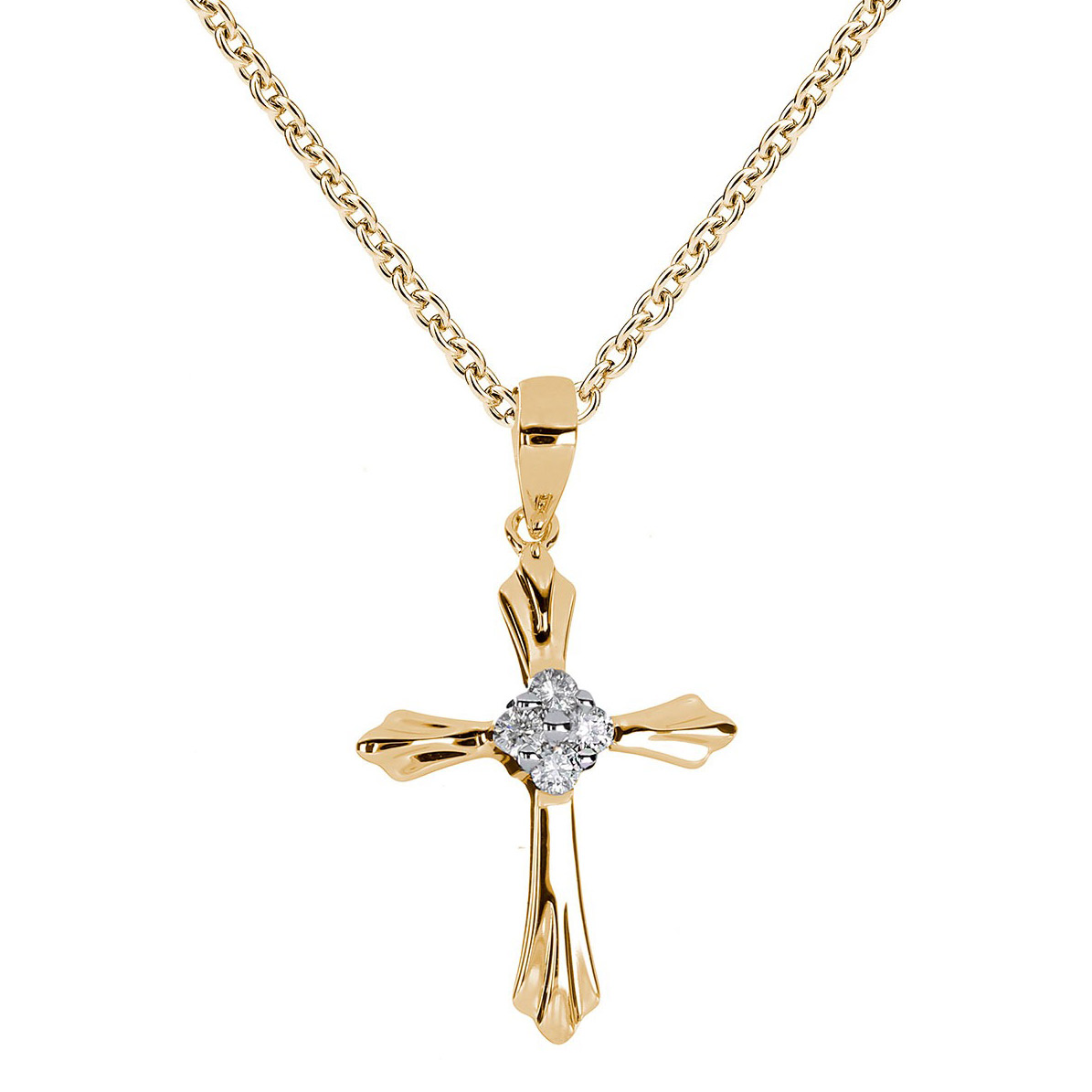 Kohinoor 123-P5340 is a timeless and precious cross pendant decorated with four bright diamonds. Made of yellow gold, the cross pendant exudes sophisticated brilliance and depth. Frame height 2.4 mm. The Kohinoor diamond cross pendant is a beautiful gift for confirmation or an anniversary that will retain its value year after year. Kohinoor jewelry is delivered in the manufacturer's gift box.