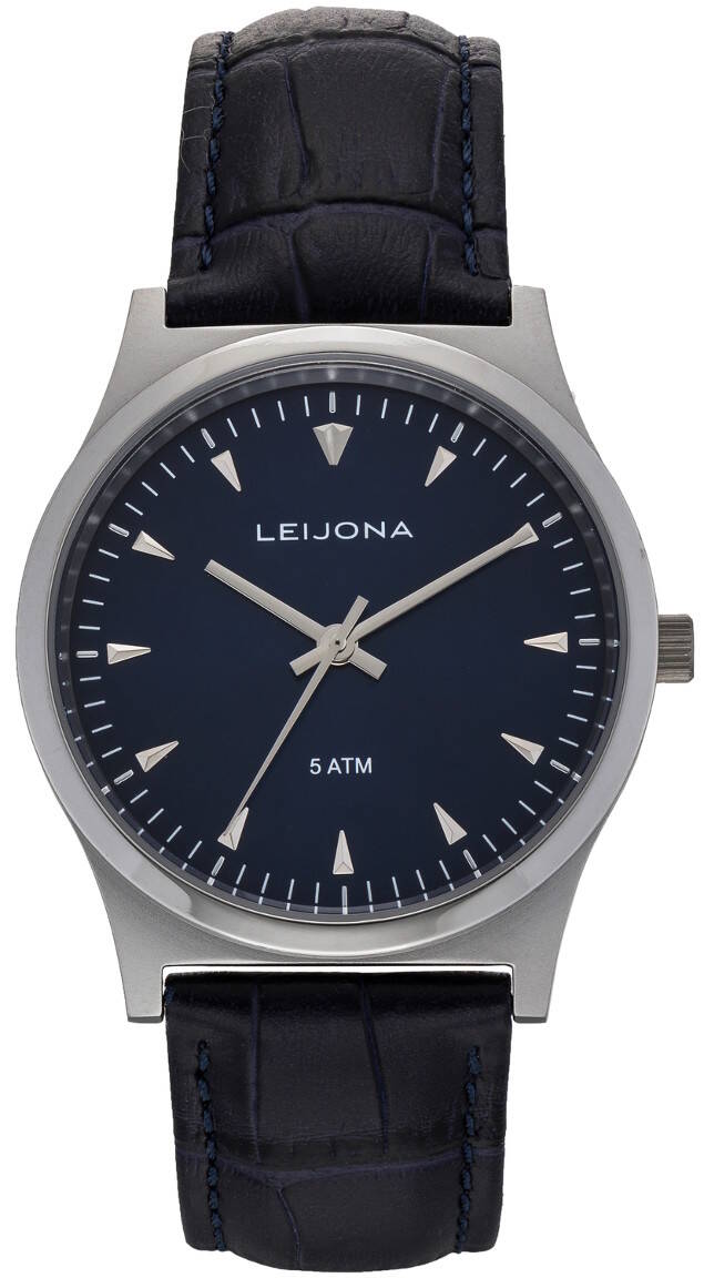 The Leijona 5020-2292 watch has silver-colored dagger indices and a blue dial. The dial is protected by mineral glass. The body of the watch is 37mm wide and 7.4mm thick. The width of the bracelet at the attachment point is 20mm. Leijona watches are guaranteed for 2 years and are supplied in the original manufacturer's packaging.