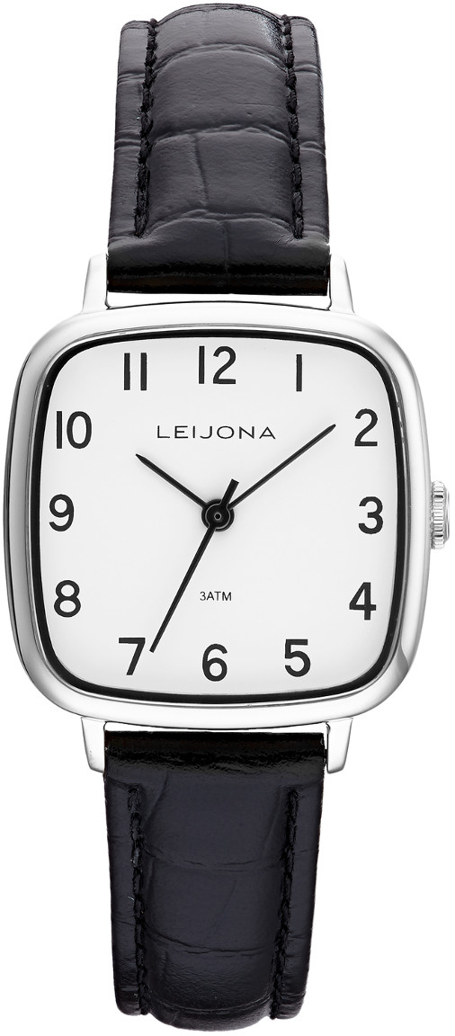 You can always rely on the sophisticated style of your Leijona 5120-4530 wristwatch. The square white dial has clear numerals and the genuine crocodile patterned leather strap feels really comfortable in your hand. The rectangle 27 mm wide case is made of stainless steel. Also available with a gold-coloured frame.