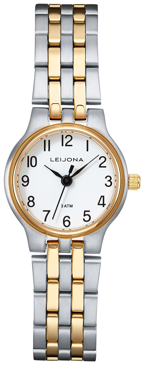 The Leijona Classic Pilpasuo 5171-2757 ladies' watch features a Miyota GL32 quartz movement. The watch's silver-coloured body and two-tone bracelet are made of stainless steel and measure just 23 mm wide and 7 mm thick. Durable mineral glass protects the dial, whose black numerical indices stand out clearly against the white dial. The Leijona Classic Pilpasuo 5171-2757 is water-resistant to 30 m/3 atm, making it splash-proof.