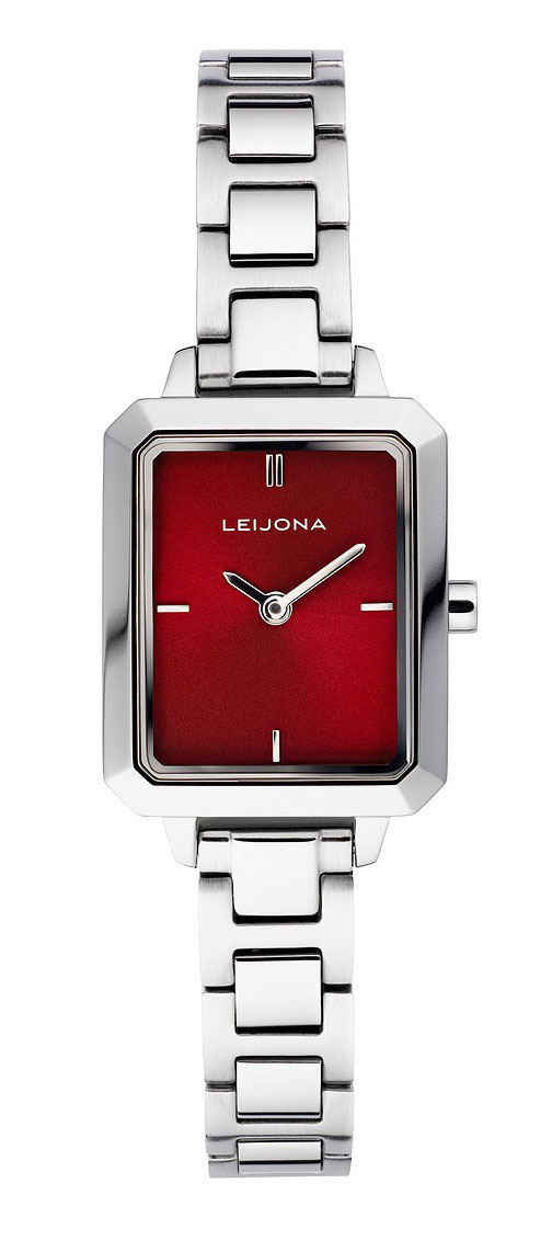 Leijona Sointu Razzle Red 5172-4734 is a charming tribute to the flamboyant style of the 70s! With a colorful dial, warm atmosphere and a unique look, this wristwatch is full of attitude. The silver-colored metal bracelet and rectangular case exude an angular vintage design. The stainless steel case is 26.5 mm long and 22 mm wide. Durable mineral glass protects the bright green dial with minute and hour hands and minimalist indexes. The watch is water resistant to 30 m / 3 atm, meaning it is splash-proof.