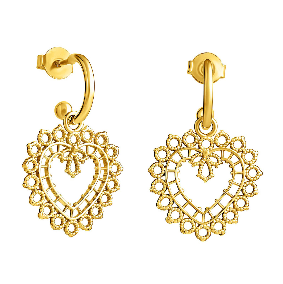 The stunning Lace Heart earrings are the perfect choice when you want to add a touch of elegance and emotion to your outfit. The delicate, handmade heart shape symbolizes love and warmth, making the earrings a great gift for a loved one or for yourself. Made of gold-plated 925 sterling silver, the earrings are versatile and are perfect for both everyday and festive occasions. The earrings have a stud fastening and are 17 x 18 mm in size.