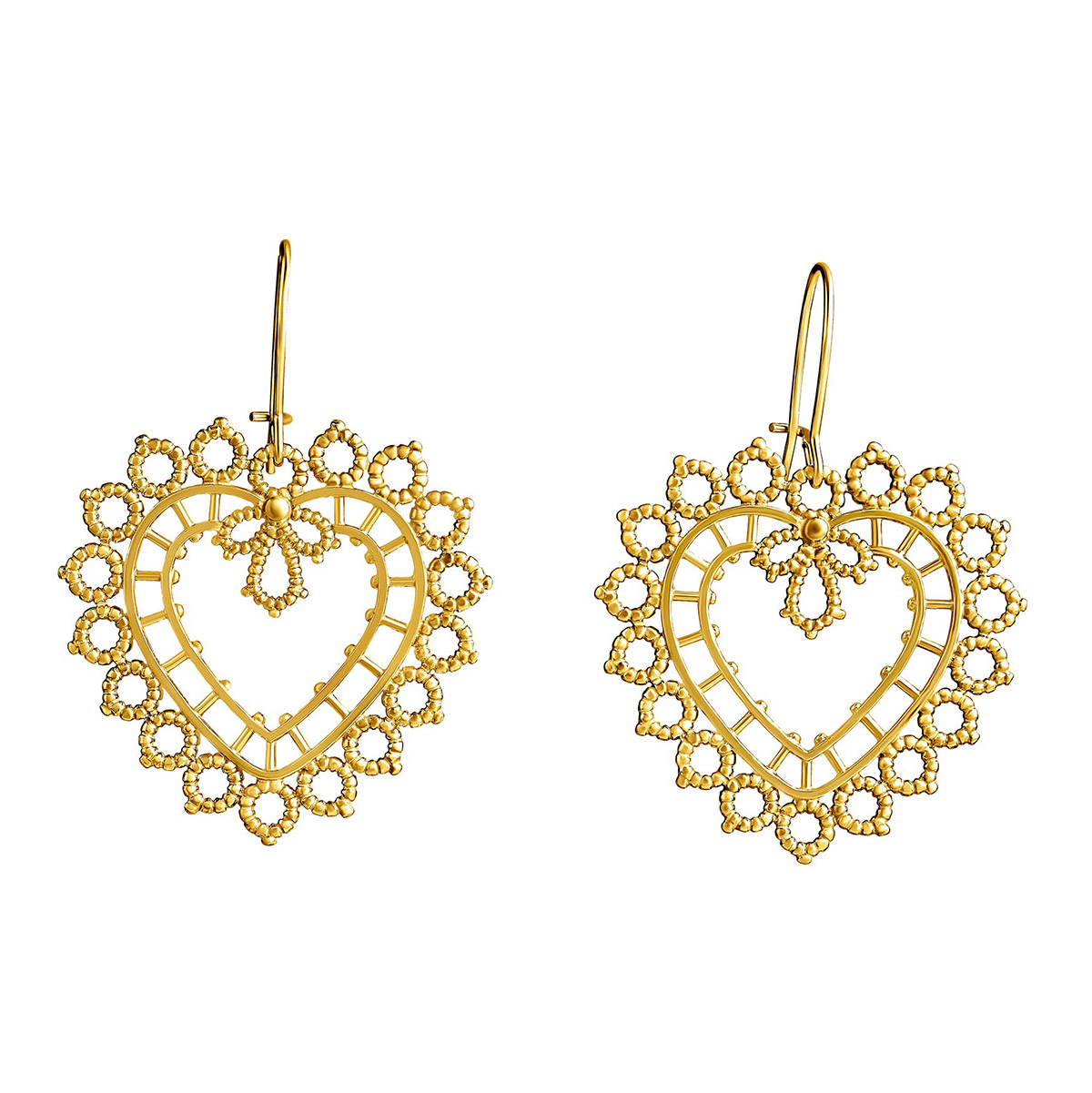 The large Lace Heart earrings are the perfect choice for a woman who appreciates stylish, meaningful and visible jewelry. The heart earrings are perfect as a Valentine's Day gift, as well as a birthday or anniversary surprise. Made of gold-plated 925 sterling silver, the earrings are versatile and are perfect for both everyday life and celebrations. The earrings have a hook fastening and their size is 30 x 30 mm.