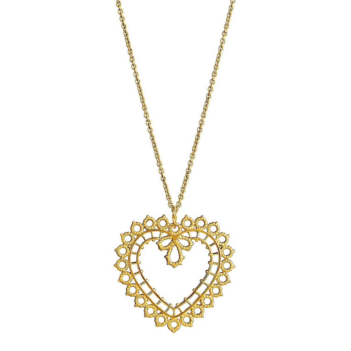 The lovely large heart pendant from the Lace Heart collection is made of gold-plated 925 sterling silver with Finnish craftsmanship. The heart pendant is an excellent way to express love, affection and warmth. Light and comfortable to wear, this pendant is perfect for both everyday life and celebrations. The length of the anchor chain is 60 cm and the size of the pendant is 40 x 41 mm.