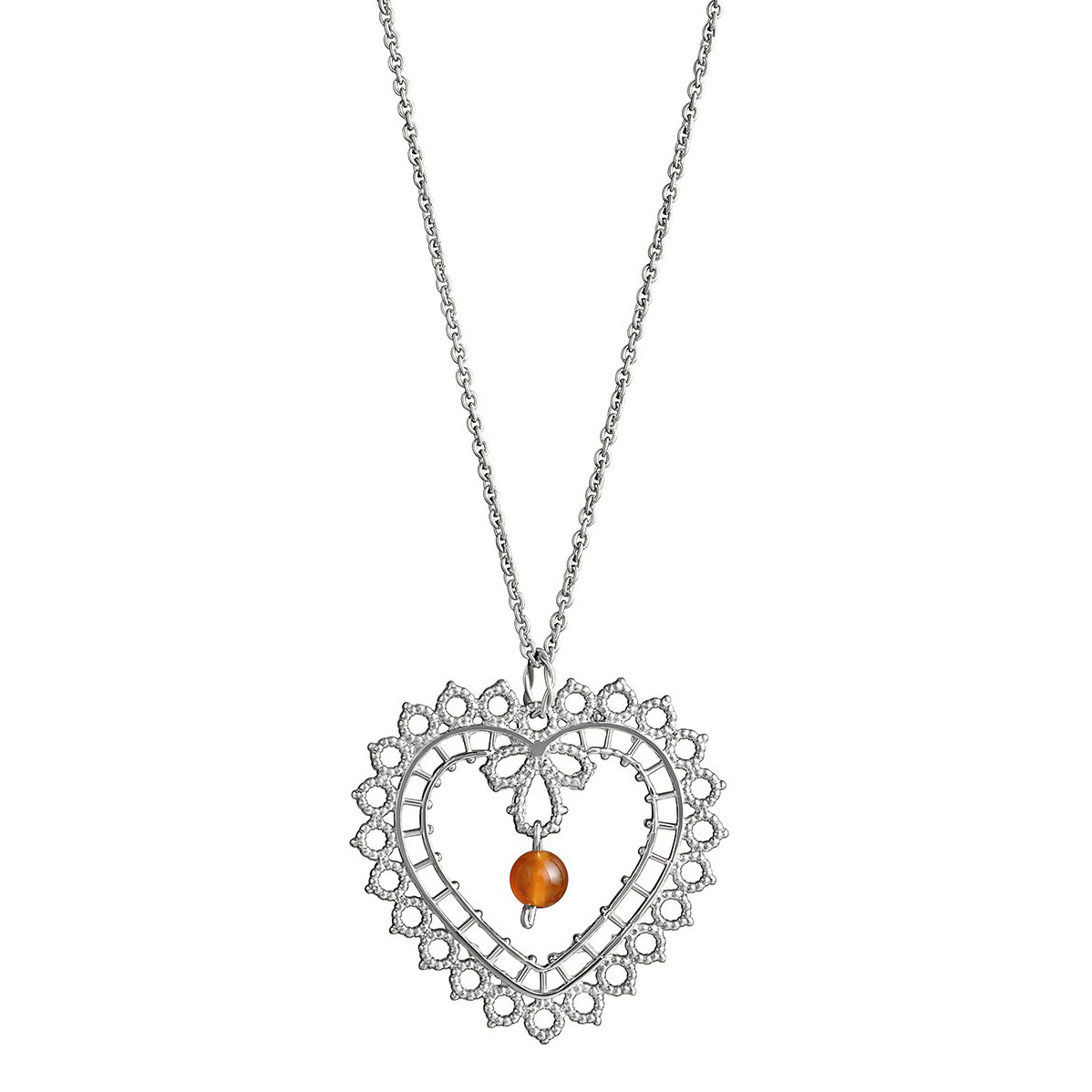 The center of the large heart pendant from the Lace Heart collection is decorated with a bright red crystal bead. The elegant and timeless heart design exudes warmth and love for its wearer and retains its beauty year after year. The heart pendant is made of 925 sterling silver. The length of the anchor chain is 60 cm and the size of the pendant is 40 x 41 mm.