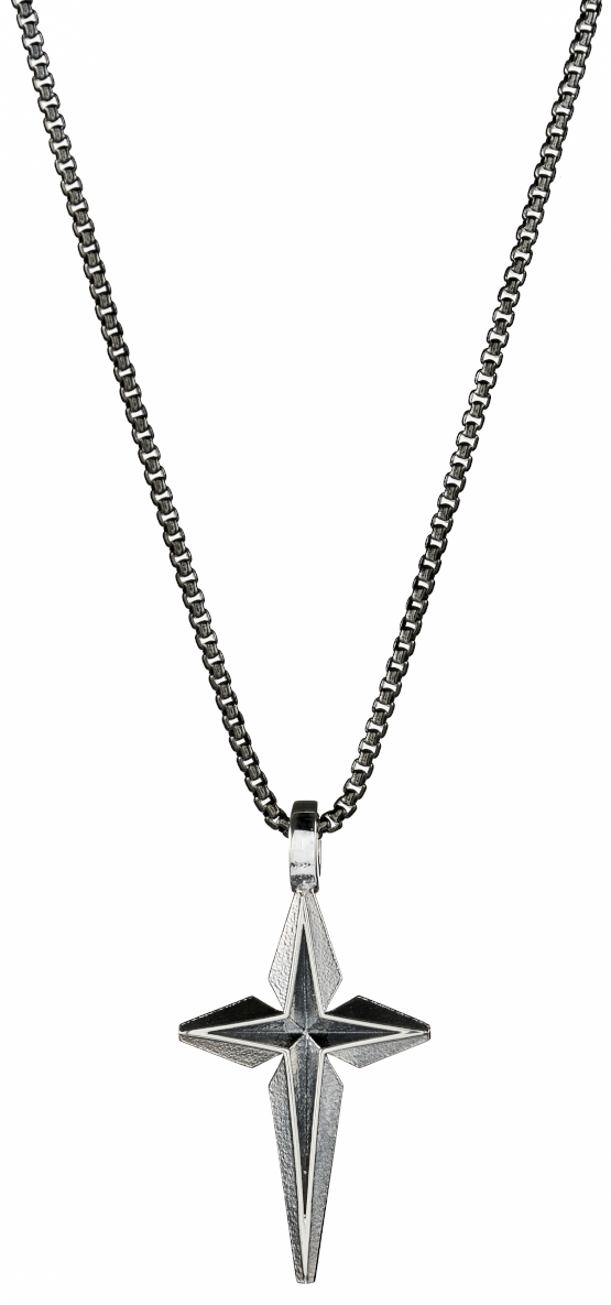 Lumoava Suojelija cross L50220300000 is designed by Eelis Aleksi and is inspired by the The North Star, the anchor of the northern sky. The Northern star guides us and helps us determine our direction. A great gift idea for a confirmant. This cross necklace is made of blackened sterling silver and the chain is adjustable between 42/45/50 cm. Cross pendant measures 17 x 33 mm. Lumoava jewelry is handcrafted in Finland from recycled materials.