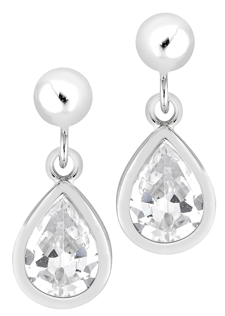Drop shaped pendeloque silver earrings combine a teardrop-shaped stone and glancing sterling silver to create a festive ensemble. The back features a pin fastening, and the earrings are easy to slip on. Size: 16 x 9 mm. Drop shaped pendeloque silver earrings are made of rhodium-plated sterling silver and come in a beautiful box.