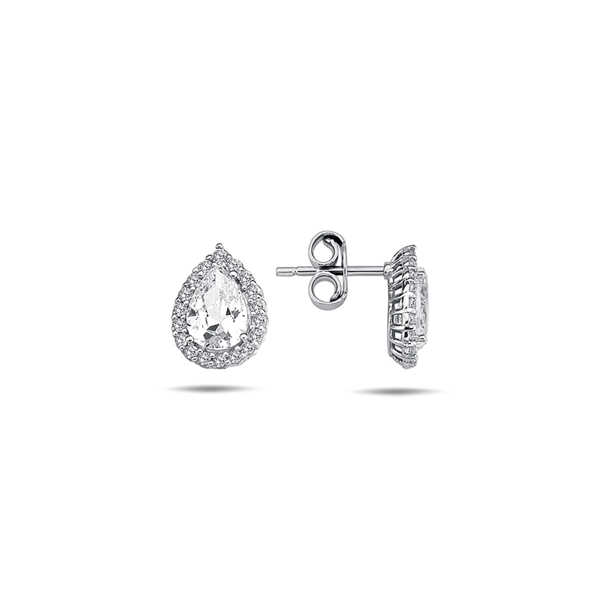 These silver, teardrop-shaped Lykka Casuals zirconia earrings are elegant and striking. These 10.5 x 8 mm halo earrings feature an elegant teardrop-shaped zirconia in the center, surrounded by small clear zirconias in a beautiful halo setting. The jewelry is made of rhodium-plated silver, which does not tarnish like regular silver. Buy this beautiful and versatile piece of jewelry for yourself or as a gift.