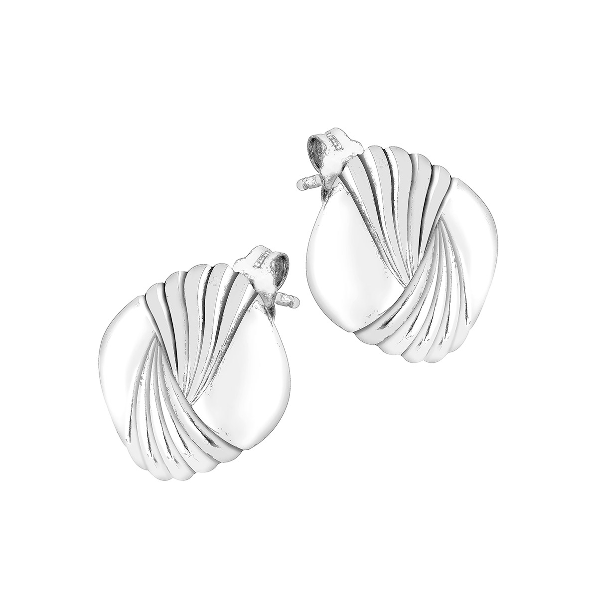 Elegant Lykka Casuals earrings with stud fastening and a beautiful pattern reminiscent of a seashell. The earrings are eye-catching in size, with a diameter of 15 mm. Made of rhodium-plated silver, which does not tarnish like regular silver. Delivered in a Lykka box.