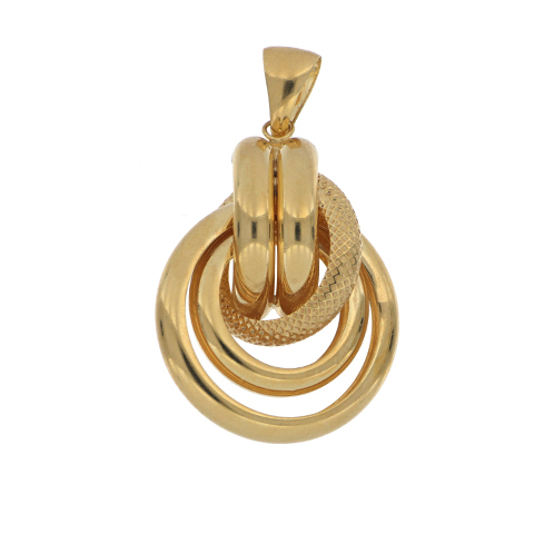 Add timeless elegance to your outfit with the Lykka Casuals gold pendant. This stunning 9-karat gold pendant consists of shiny, patterned rings. The intertwined design combines classic style with a modern look. The pendant can be easily combined with different chains and outfits.