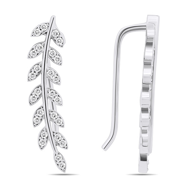 Lykka Casuals leaf climber silver earrings are sterling silver, and thanks to their long shank, the jewellery climbs beautifully along the wearer's earlobe. The earrings are adorned with clear zirconias, and measure 25 x 5mm. The Lykka jewellery comes in a beautiful box.