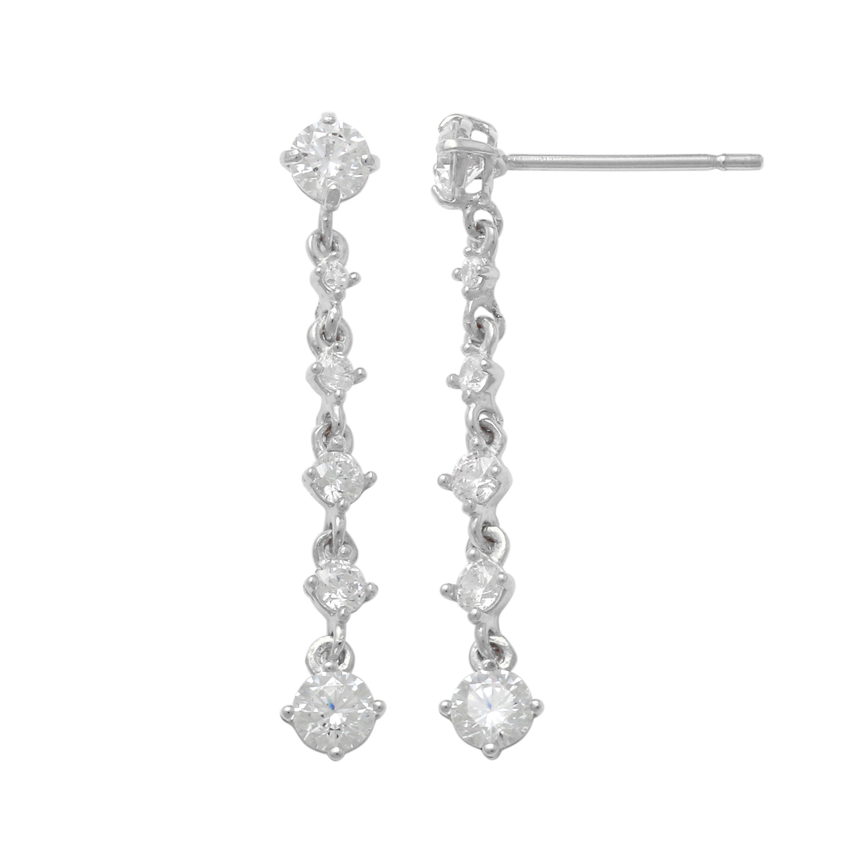 White gold pendant zirconia earrings are a striking earrings to finish off your party look or for a slightly more flamboyant everyday outfit. The jewellery is made from 9 karat white gold and features a total of 12 beautifully sparkling zirconia. The earrings have a pin fastening and measure 25mm in length. The Lykka jewellery comes in a beautiful box.