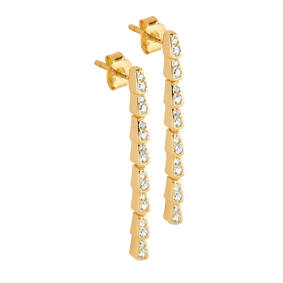 Lykka Casuals elegant and showy earrings in gold-plated silver. The surface of the pendant is adorned with sparkling zirconia stones, adding luxury and glamour to the overall look. The size of the jewellery is 2 x 35 mm. The Lykka silver earrings are delivered in a beautiful jewellery box.