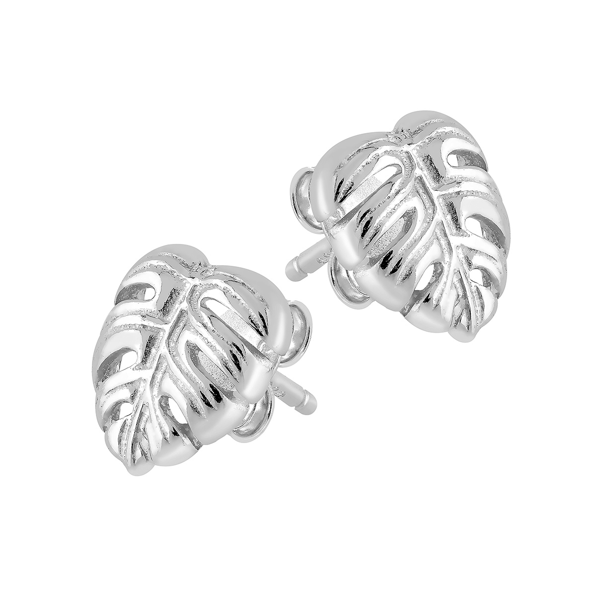 The design, reminiscent of a monstera leaf, is a stylish and trendy choice that is perfect for both casual everyday style and festive occasions. The stud earrings sit comfortably in the ear and are easy to combine with other silver jewelry.