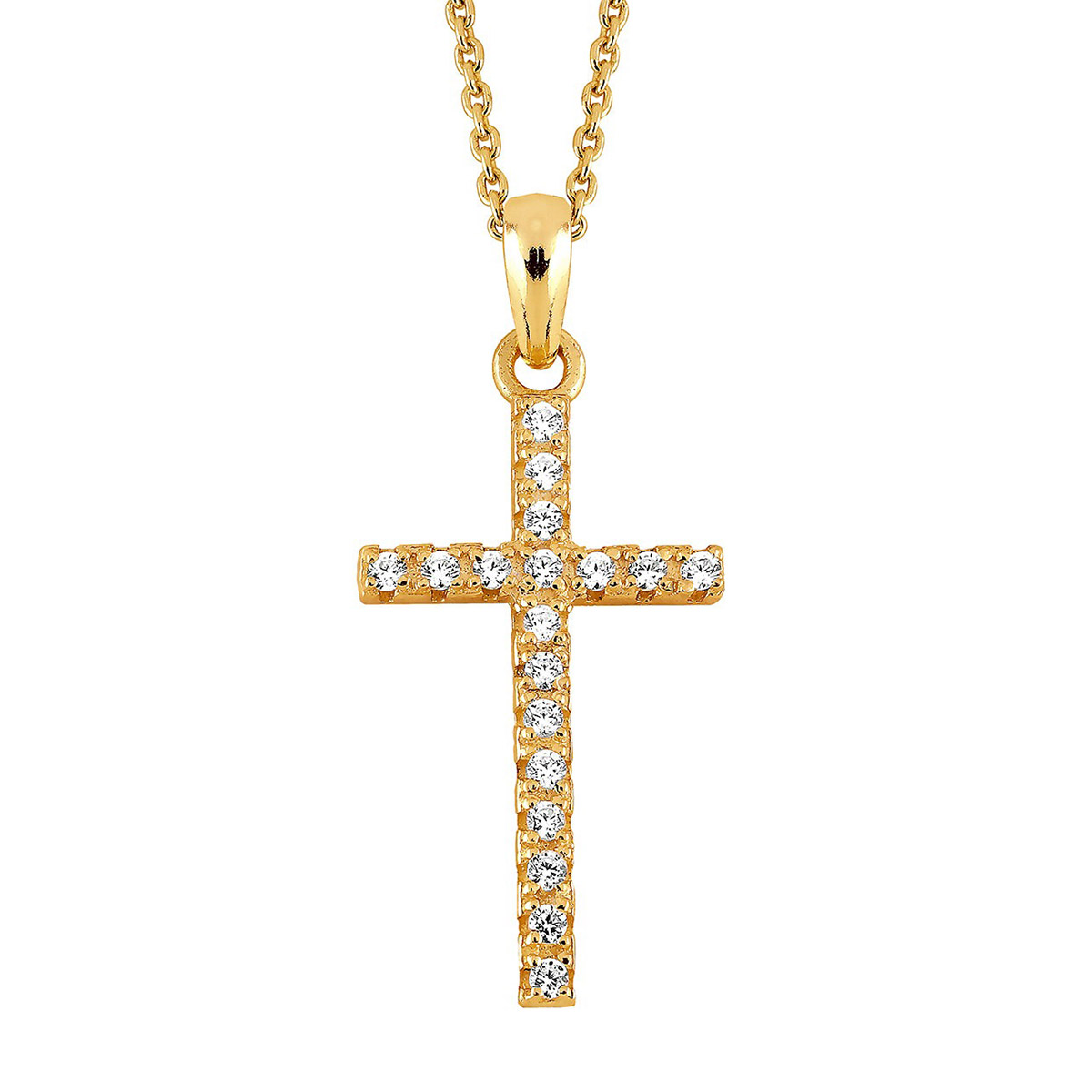 Lykka Crosses Gold-Plated Silver Cross Necklace with Zirconia 45 cm