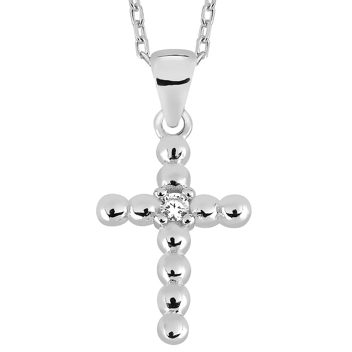 Lykka Crosses silver beaded cross necklace 45 cm