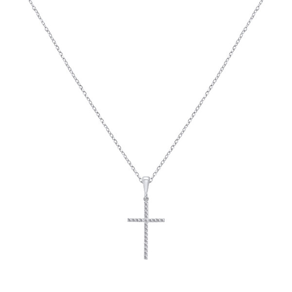 The chain length is adjustable from 42-45cm and the pendant size is 15 x 32 mm, and its surface is decorated with bright zirconias, which give the jewelry a beautiful shine. The silver chain is light and comfortable to wear, and it harmoniously complements the whole.