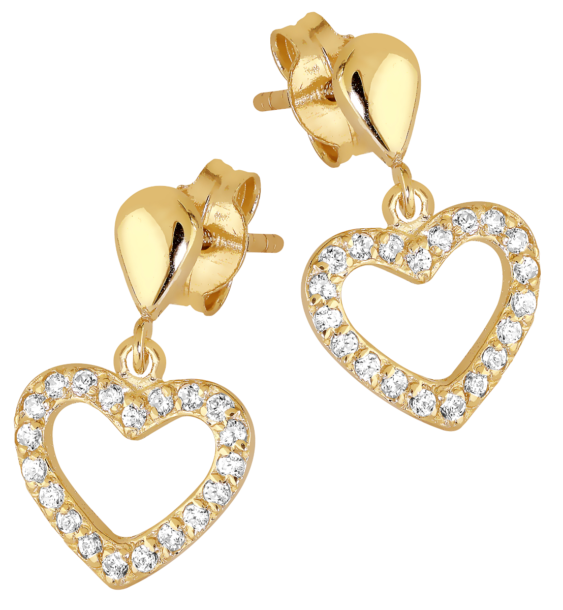 The Lykka heart gold earrings charm with their heart-shaped pendant. Give a lovely gift to yourself, a loved one, or a friend on Valentine's Day. The earrings are made of 9 karat yellow gold. The Lykka gold earrings are delivered in a beautiful box.