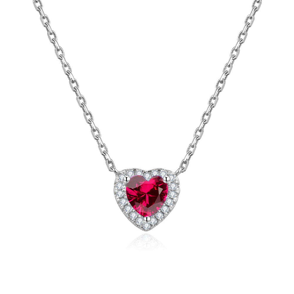 Lykka Hearts silver necklace heart red zirconia 45 cm