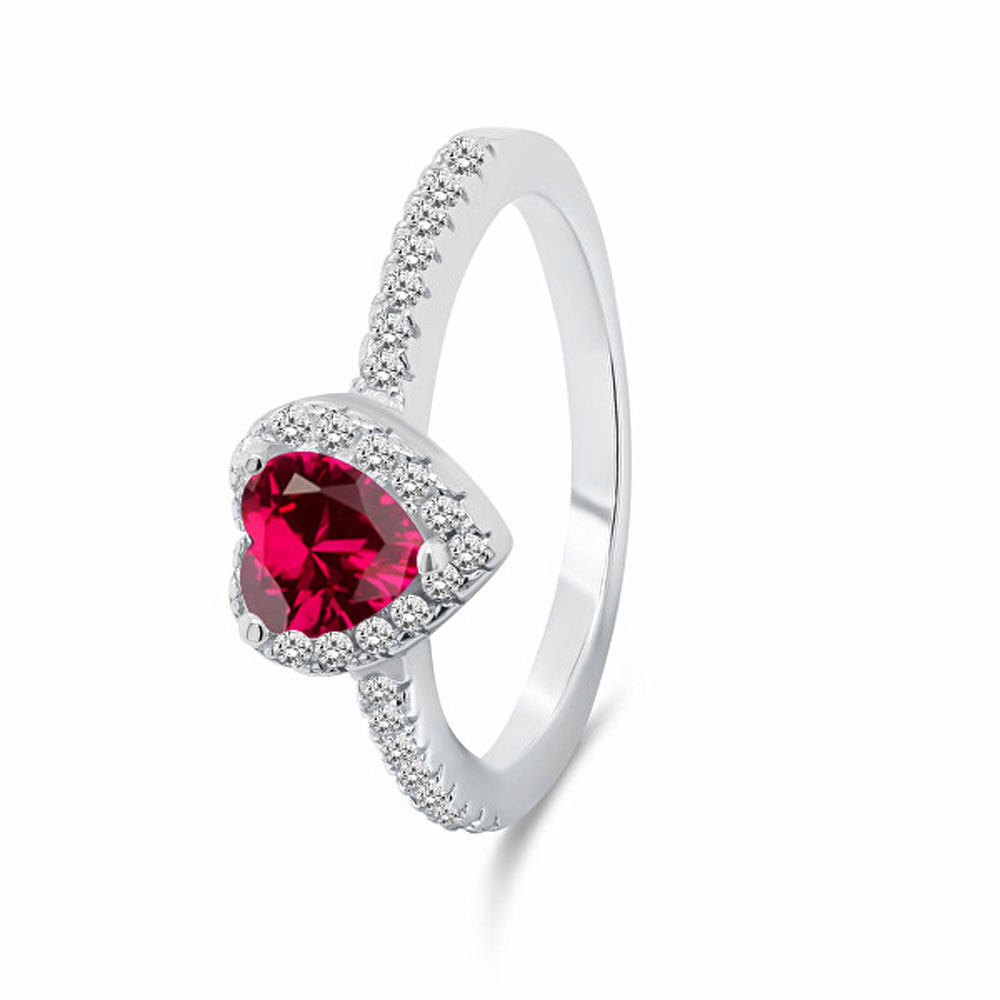 The romantic and sparkling Lykka Hearts ring charms with a striking heart-shaped center stone. In the center shines a ruby-red 8 x 8 mm heart surrounded by bright zirconias. The body of the ring is also decorated with zirconia stones, which makes the whole thing especially shimmering and luxurious.