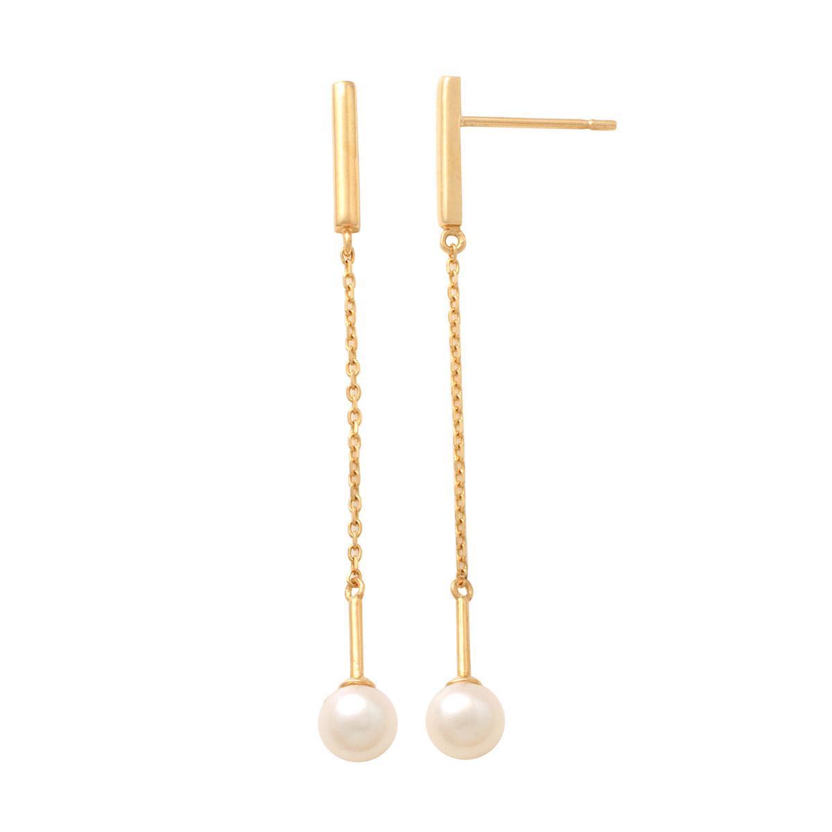 The striking and wonderfully lightweight Lykka Pearls pearl earrings are made of 9-karat gold. The length of the gold part of the earring is 37mm and the size of the freshwater pearl that sways beautifully at the bottom is 4mm. Pearls are a timeless and classic material in jewelry, and here they are combined with a modern look and jewelry design. The length of the jewelry gives it a showy look, while still being light and comfortable to wear. Delivered in a Lykka jewelry box.