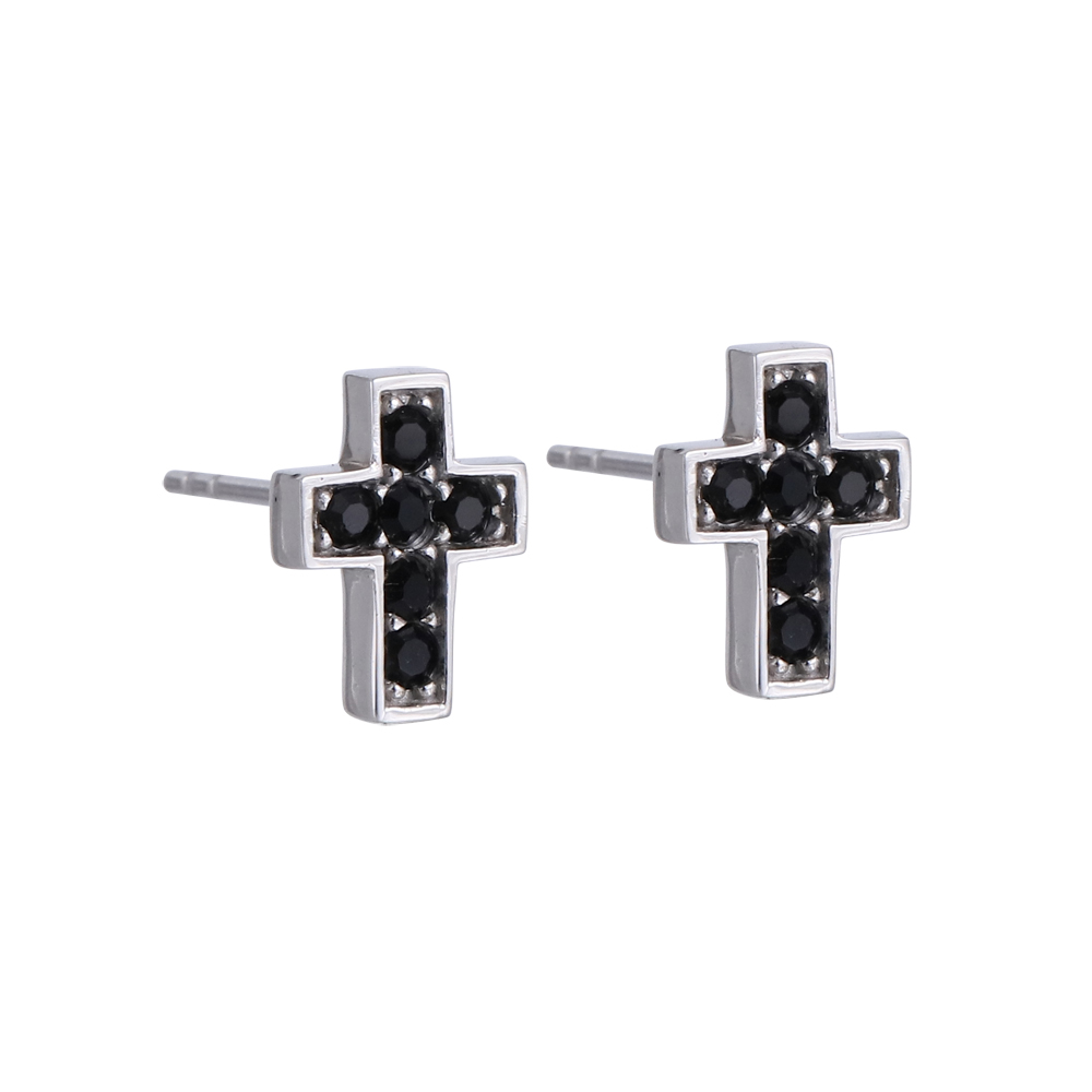 Lykka Strong cross earrings are stylish and modern cross earrings that combine timeless symbolism with bold design. The jewelry is made of durable stainless steel and decorated with black decorative stones, which add striking contrast and depth. Measuring 10 × 8 mm, these earrings are compact yet eye-catching.