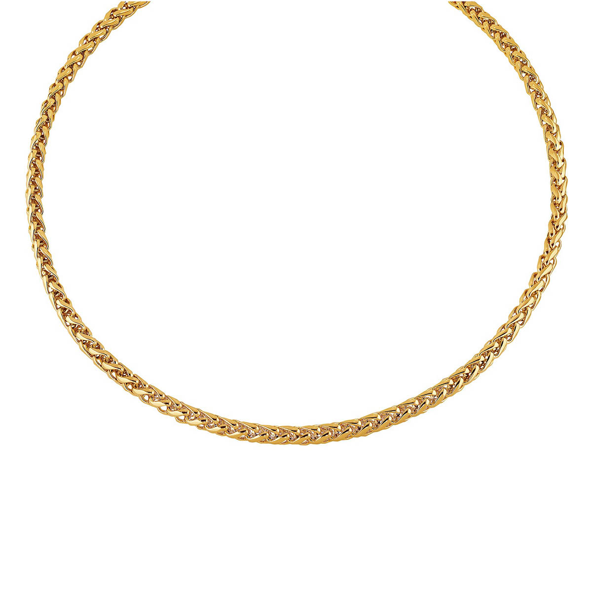 The Lykka Trend gold-plated wheat chain necklace is a classic and timeless steel necklace made of durable and high-quality gold-colored stainless steel. The thick and stylish chain design makes it a great-looking accessory for versatile use.