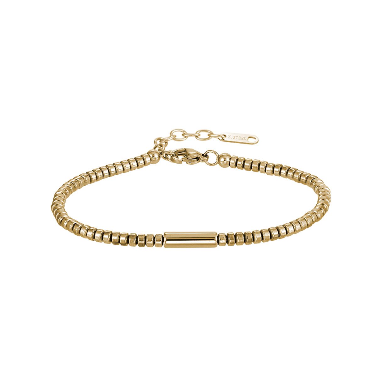 The delicate and timelessly elegant Lykka Trend bracelet adds a touch of luxury to any outfit. This stainless steel bracelet consists of small gold-colored beads. The length of the necklace is adjustable from 18 to 21 cm and the width is 4 mm.