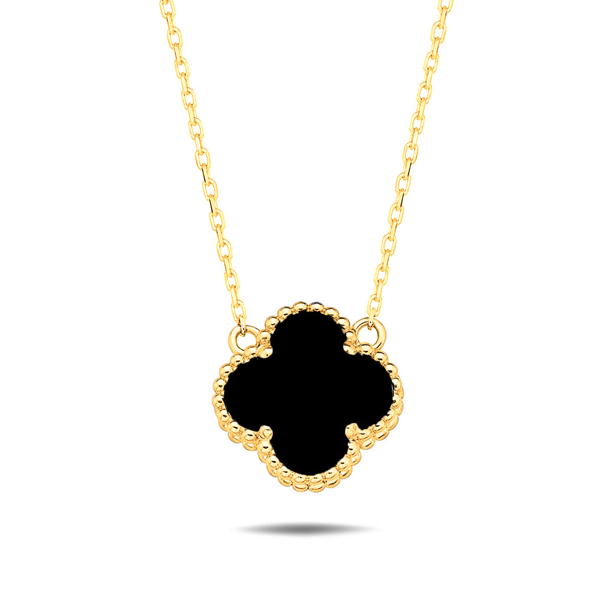 Popular four-leaf clover jewelry now also in the Lykka collection. Lykka Symbols four-leaf clover gold-plated necklace with black stone. The edge of the four-leaf clover jewelry is decorated with small silver beads, which completes the impressive piece of jewelry. Stylish black combined with shiny gold is elegant and impressive. The jewelry has a graceful chain that emphasizes the impressiveness of the four-leaf clover. The chain measures 42+3 cm, so it can be adjusted to a suitable size. The diameter of the four-leaf clover pendant is 12 mm. Lykka silver jewelry is delivered in a beautiful jewelry box. ‌
