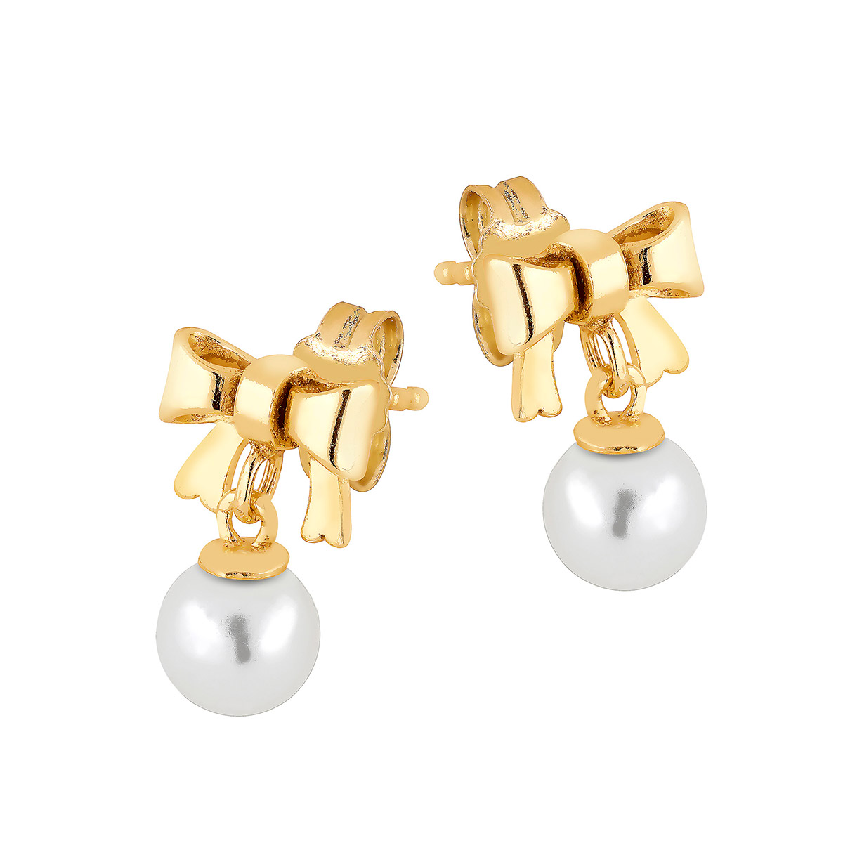 Lykka Symbols glass pearl and bow tie earrings goldplated silver