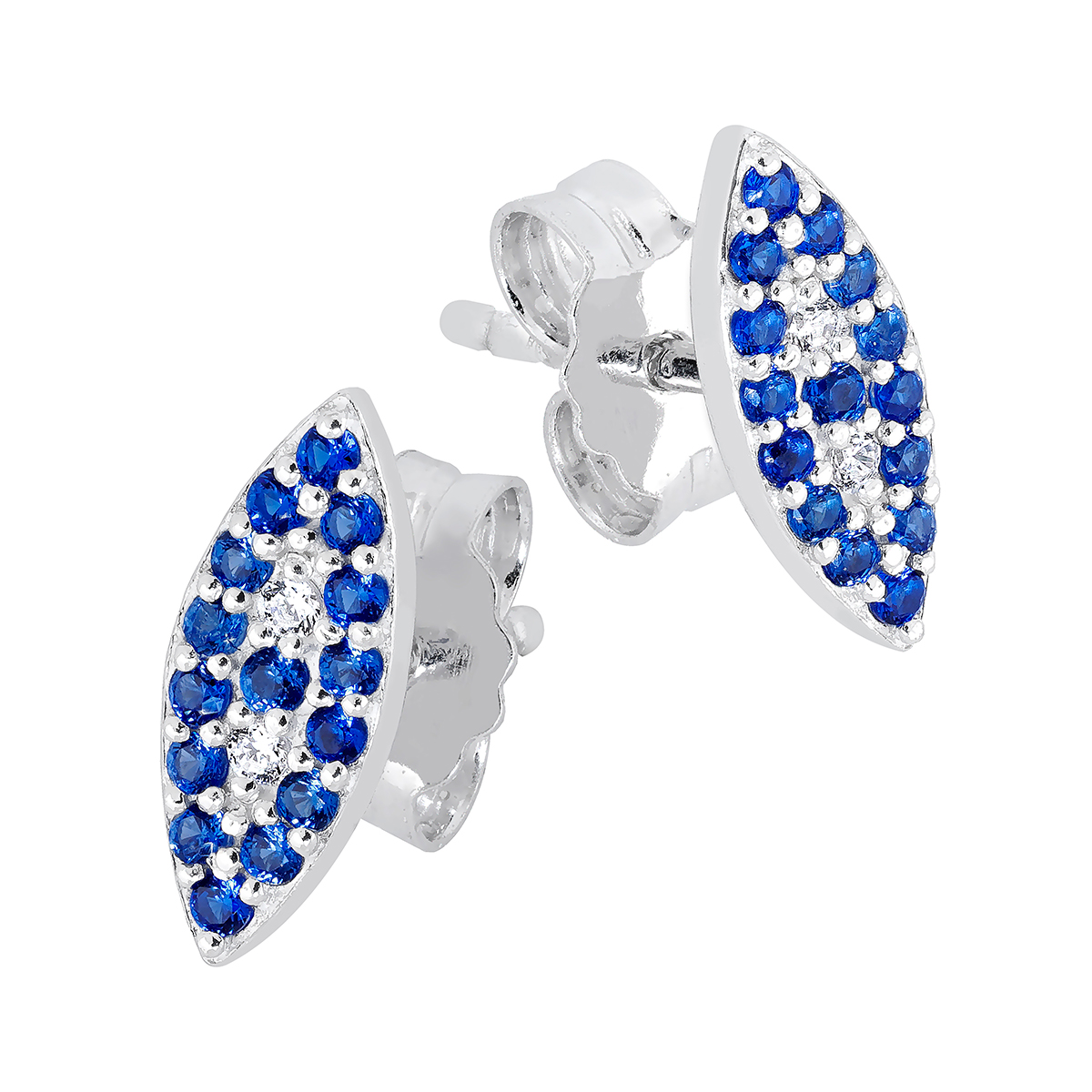 Lykka Symbols Hamsas Evil Eye silver earrings with a stud. The silver Evil Eye earrings are adorned with blue and bright cubic zirconia. The Evil Eye symbolises many things and is therefore a popular symbol in jewellery to bring good luck and protect against negative things. The jewellery is made of sterling silver, and the look is finished with a rhodium plating that keeps the silver shining year after year. Size 10,5 mm. The sterling silver earrings are delivered in a beautiful jewellery box.