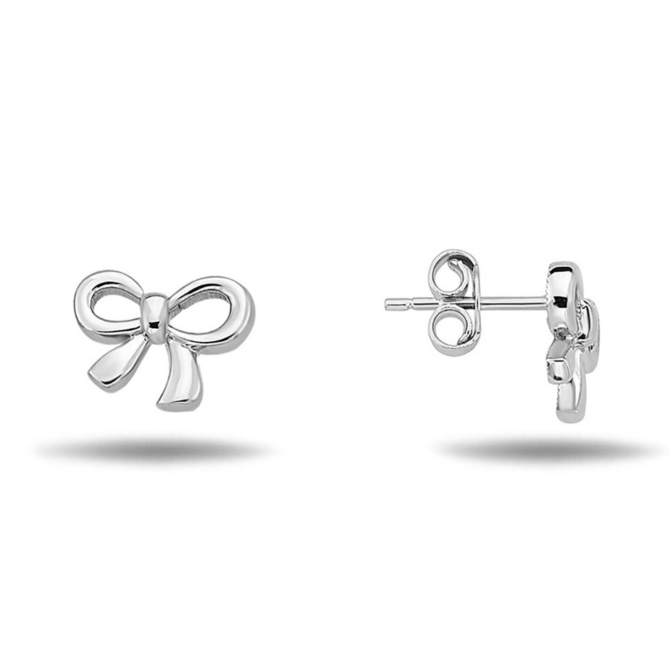 Lovely and striking Lykka Symbols bow stud earrings. The earrings have a stud fastening and are 8.3 x 10.3 mm in diameter. Made of rhodium-plated silver, which does not tarnish like regular silver. The bow is a popular symbol in jewelry and it symbolizes femininity and the knot of the bow represents love. These are great for everyday wear and a variety of outfits.