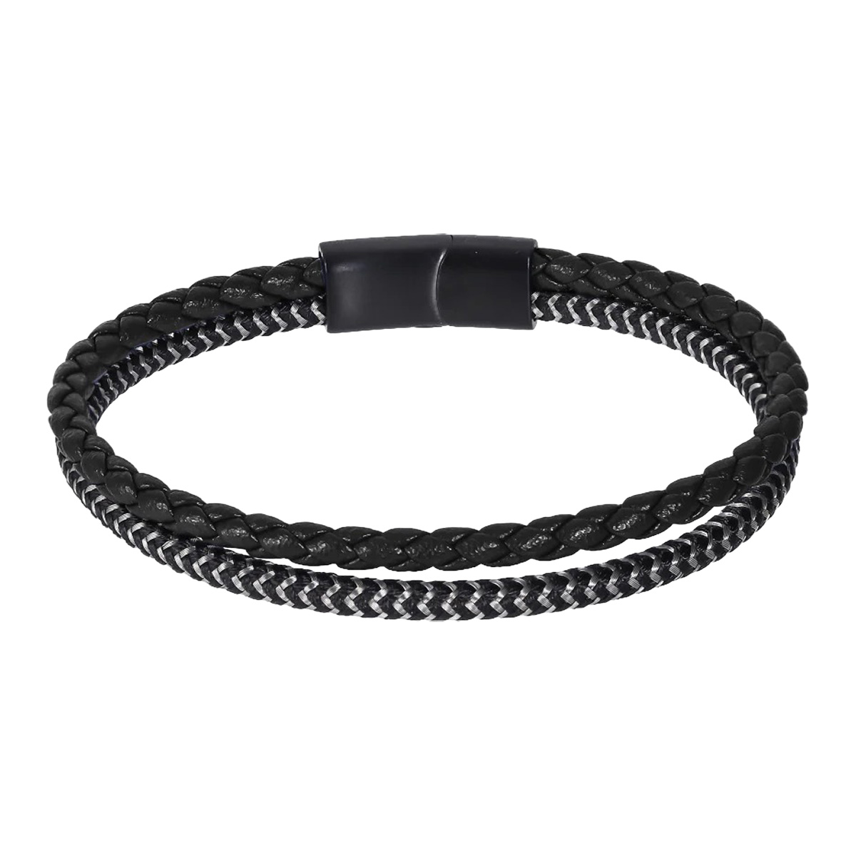 Lykken Strong leather bracelet black steel 21 cm