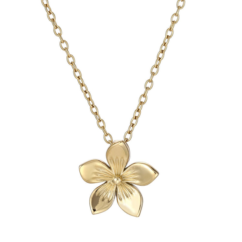 Lykken Trend gold-plated flower steel necklace with chain 45 cm