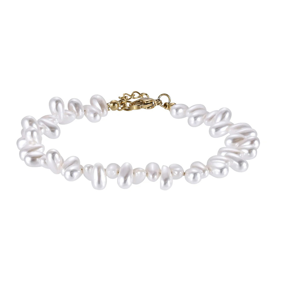 Lykken Trend steel bracelet with freshwater pearls 18+2 cm