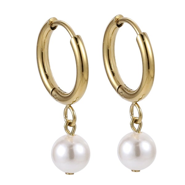 Lykken Trend white pearl gold-plated hoops 10 mm