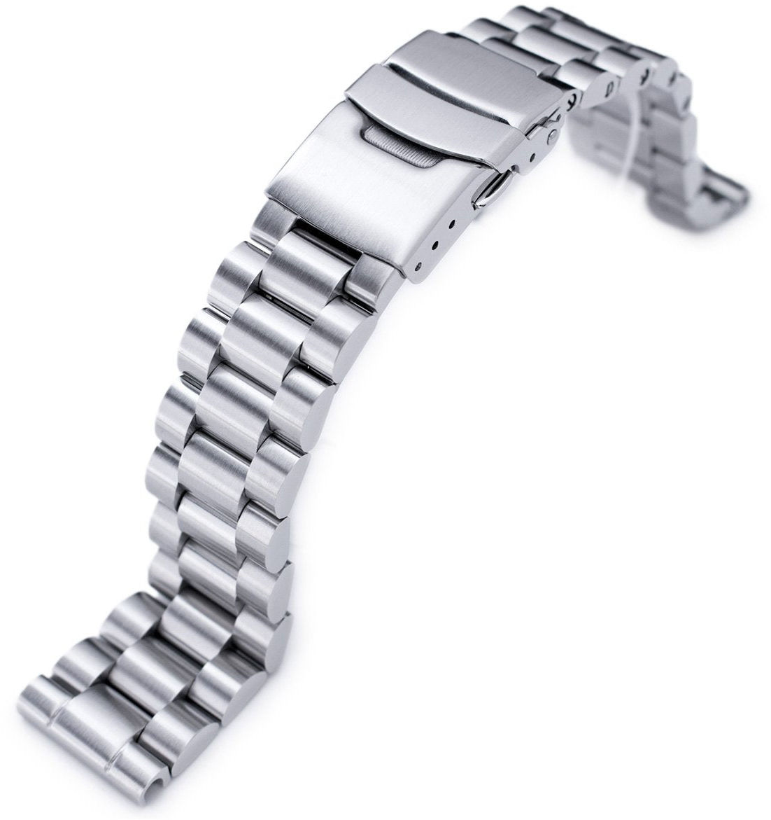 MiLTAT Super-O Boyer Stainless Steel Strap for Seiko 5 SS221805P2S019-S5 is made of 316L surgical steel. The bracelet fits Seiko series watches such as SRPD51, SRPD53, SRPD55, SRPD57, SRPD59, SRPD61, SRPD63, SRPD65, SRPD67, SRPD69, SRPD71, SRPD73, SRPD75, SRPD76, SRPD77, SRPD79, SRPD81, SRPD83 and SRPD85. The length of the bracelet is easily adjustable thanks to the six adjustment holes on the clasp. The bracelet is supplied with 2 pcs. 2 mm spring pins to ensure secure attachment to the watch case. The width of the bracelet at the ends is 22 mm and the pieces of the bracelet are screw fastened. A double-locking turnbuckle completes the rigid locking system.