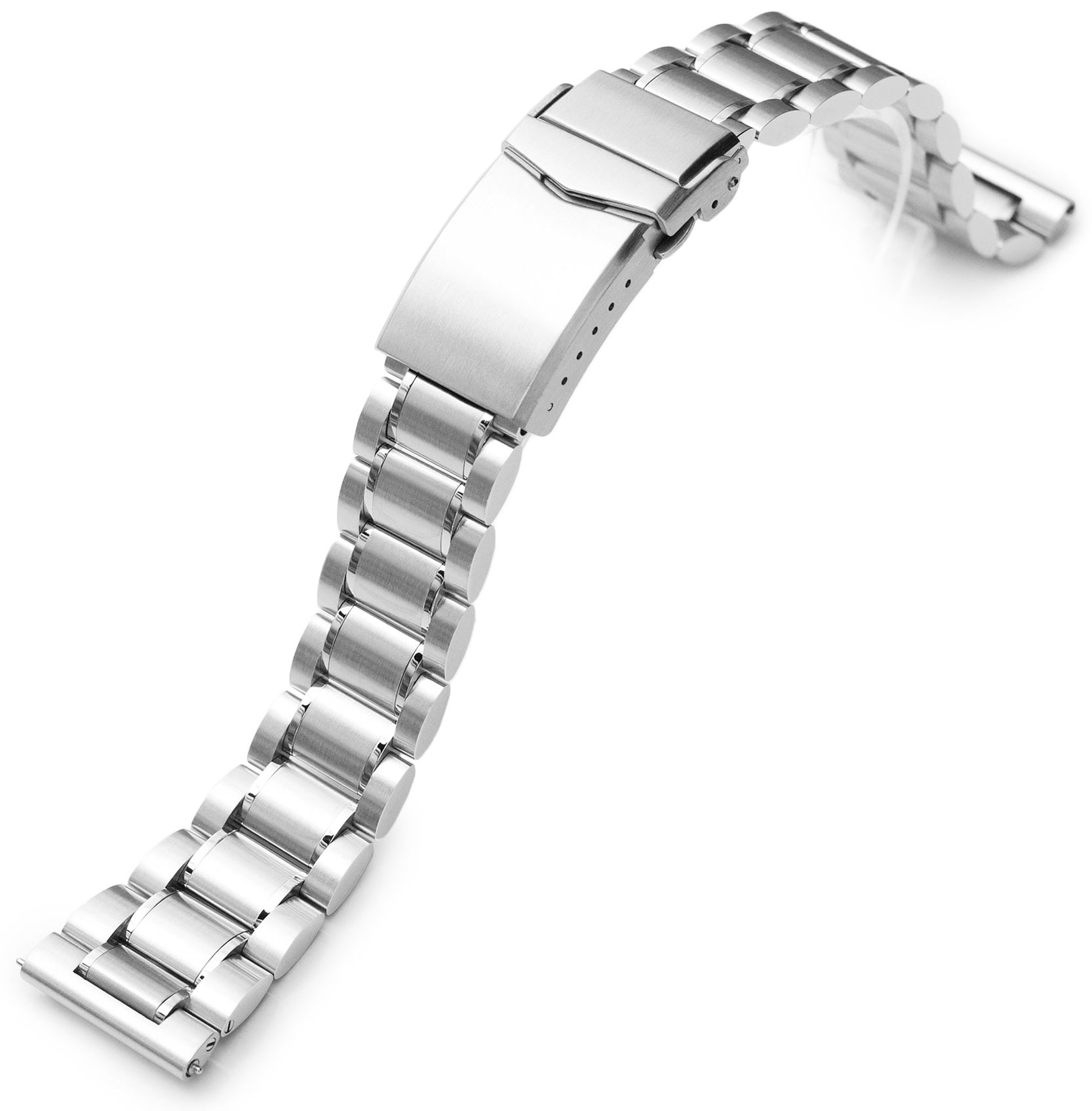 MiLTAT Entwine II (Pull-Twist) Brushed-Polished straight end 22 mm SS221820BPS164S bracelet is made of 316L surgical steel with a durable brushed finish and polished V-lock. The Entwine II bracelet utilizes pull-twist resizing technology, with screwless links that come off with a simple twist - no more need for a separate tool to adjust the length.