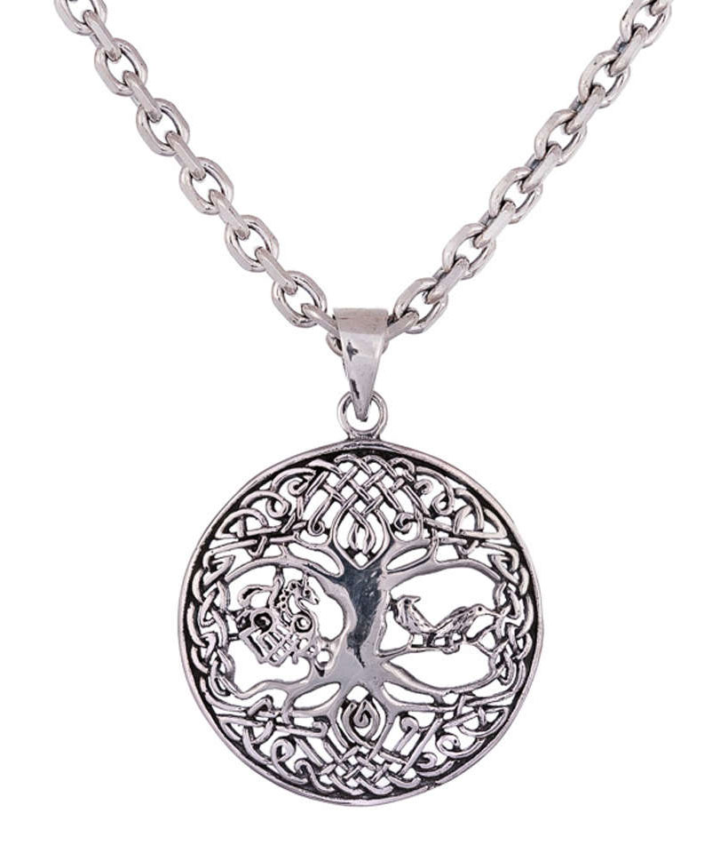 Northern Viking Jewelry Tree Of Life with Raven and Sleipnir NVJ-H-RS071 is an elegant Viking themed pendant made of sterling silver. The pendant measures 2.8 cm in diameter. Weighing only 5 grams, the Tree Of Life with Raven and Sleipnir NVJ-H-RS071 pendant is delivered in a unique Northern Viking Jewelry® jute bag. Please note, The package does not include the chain!