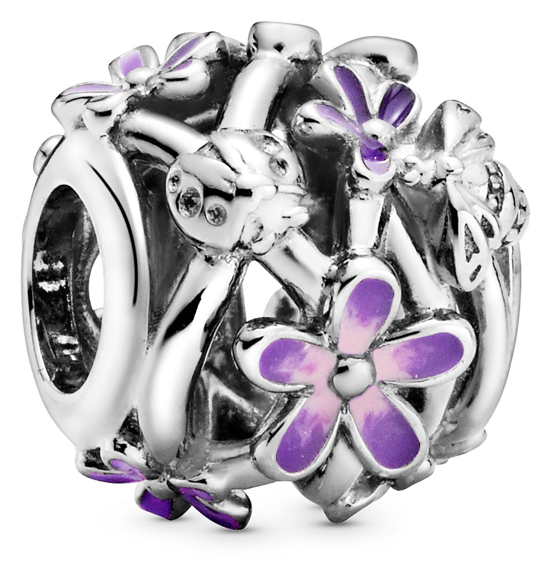 Pandora Openwork Purple Daisy 798772C02 is made of sterling silver. Pandora 798772C02 is decorated with lavender and pink enamel and polished ladybugs and bees. The jewellery measures 11.2 x 9.8 x 11.2 mm and is supplied in the original manufacturer's box.